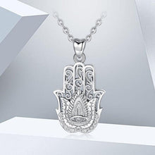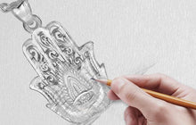 Made of 925 Sterling Silver, this Hamsa necklace is available as a silver pendant, or as a silver pendant with a silver necklace.