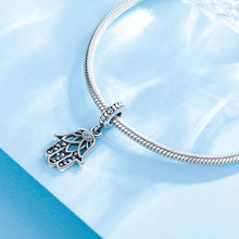 Made of 925 Sterling Silver, add this beautiful Hamsa Hand with a Lotus and Evil Eye design silver pendant to your necklace, keychain, or you can even latch it with your handbag.