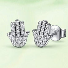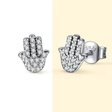 • Load image into Gallery viewer, White Stone Hamsa Hand Silver Stud Earrings - Earrings